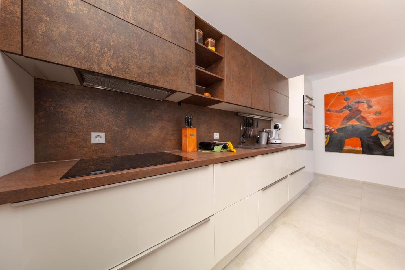 Three-Bedroom Apartment. This apartments standout feature is the private pool. The apartments kitchen is available for cooking and storing food. The spacious apartment offers air conditioning, a washing machine, heating as well as a terrace with sea views. The unit has 4 beds.