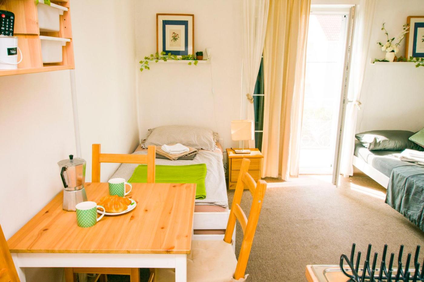 Two-Bedroom Apartment. This spacious apartment is comprised of 1 living room, 2 separate bedrooms and 1 bathroom with a hairdryer and free toiletries. Guests will find a stovetop, a refrigerator, kitchenware and an oven in the kitchen. The apartment also has a barbecue. The apartment features air conditioning, a coffee machine, heating as well as a balcony with garden views. The unit offers 3 beds.