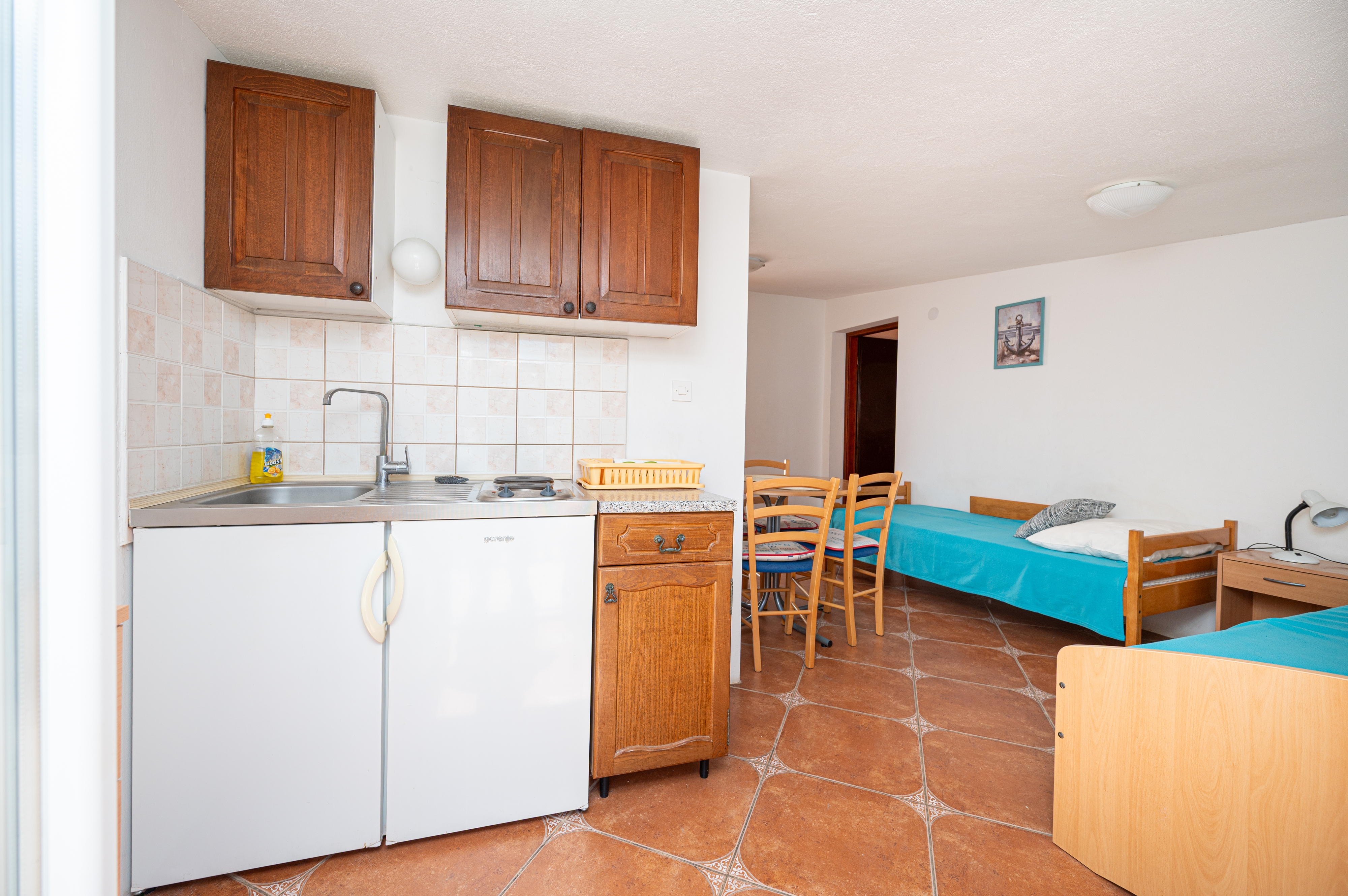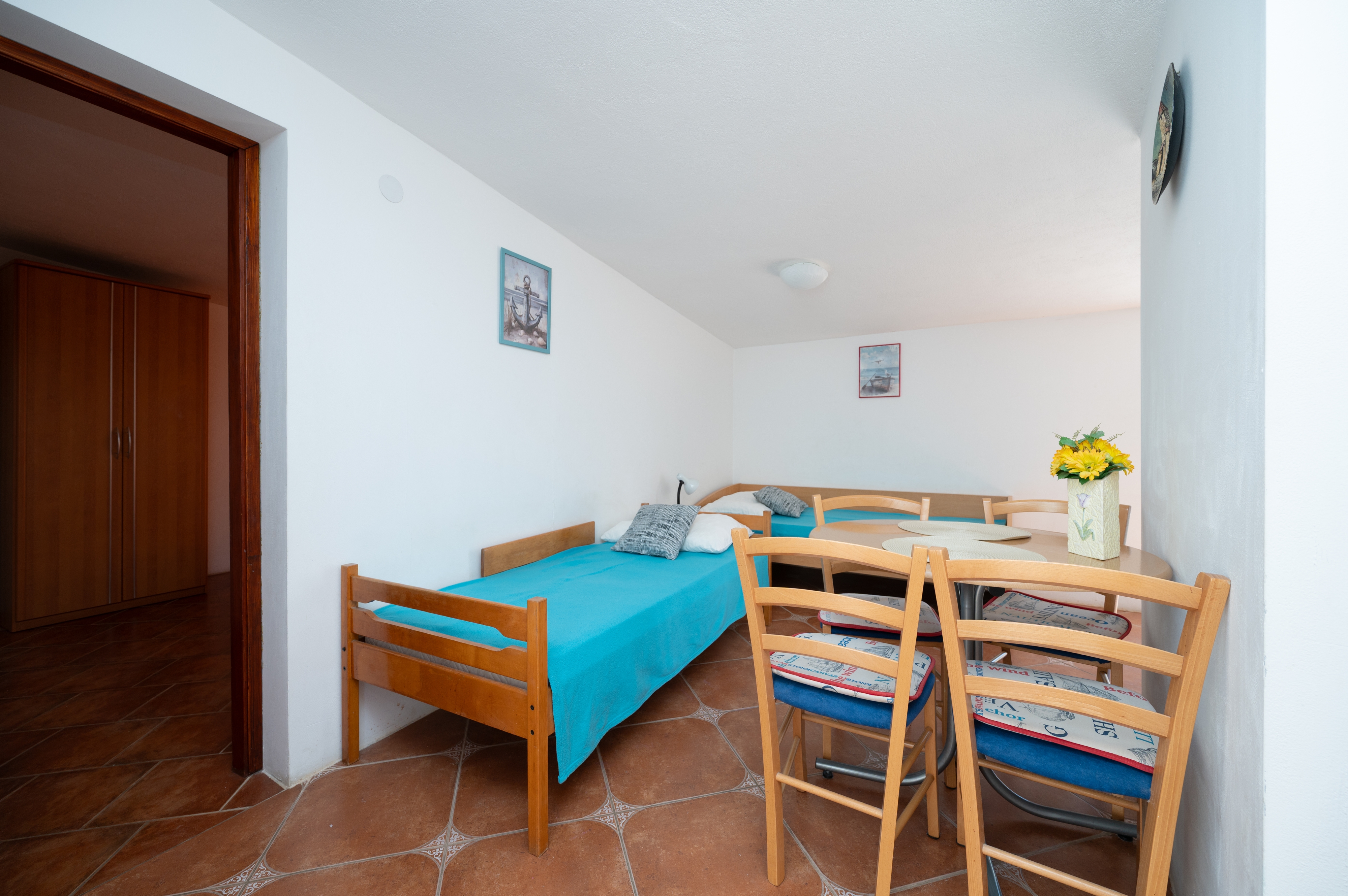 Apartment can accommodate 4 guests. Beds are situated in 1 sleeping rooms, but also in the living room, within 27m2. Guests can use a private terrace to enjoy the warm summer evenings. The apartment offers the sea view. Food can be prepared using barbecue which is shared with other guests too. This accommodation unit welcomes pets at an additional charge. INCLUDED IN THE PRICE: tourist tax, final cleaning, air-conditioning, parking, internet, baby cot, iron, ironing board, hairdryer. OBLIGATORY ADDITIONAL COSTS: short stay fee (surcharge depending on a number of booked nights: 30% - 1, 20% - 2, 10% - 3). OPTIONAL ADDITIONAL COSTS: pets (€5.00 per night). The availability of additional services for your chosen dates of stay, as well as their prices (if none are listed) must be checked ahead of time. Any additional services not shown in the price calculation are payable directly to the property owner and only if used by the visitor.