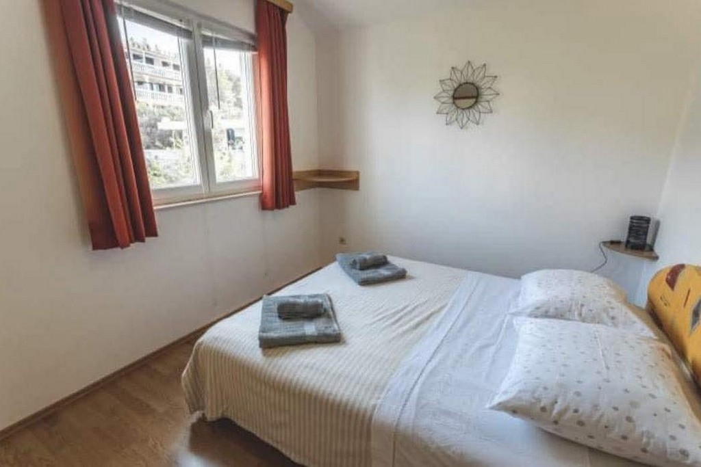 Apartment can accommodate 4 guests. Beds are situated in 2 sleeping rooms, within 42m2. Guests can use a private terrace to enjoy the warm summer evenings. The apartment offers the sea view. Food can be prepared using barbecue which is shared with other guests too. This accommodation unit welcomes pets at an additional charge. INCLUDED IN THE PRICE: tourist tax, final cleaning, air-conditioning, parking, internet, baby cot, iron, ironing board, hairdryer. OBLIGATORY ADDITIONAL COSTS: short stay fee (surcharge depending on a number of booked nights: 30% - 1, 20% - 2, 10% - 3). OPTIONAL ADDITIONAL COSTS: pets (€5.00 per night). The availability of additional services for your chosen dates of stay, as well as their prices (if none are listed) must be checked ahead of time. Any additional services not shown in the price calculation are payable directly to the property owner and only if used by the visitor. Discounts to the base price: free day 21=19 (for reservations of 21 or more days you get 2 free days for the stay until 31122026).