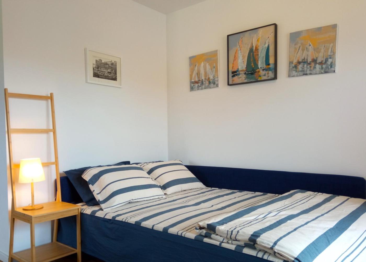 Two-Bedroom Apartment. This spacious apartment includes 1 living room, 2 separate bedrooms and 1 bathroom with a walk-in shower and free toiletries. In the fully equipped kitchen, guests will find a stovetop, a refrigerator, a dishwasher and kitchenware. The air-conditioned apartment offers a flat-screen TV with streaming services, a washing machine, a private entrance, soundproof walls as well as ancourtyard view. The unit has 3 beds.