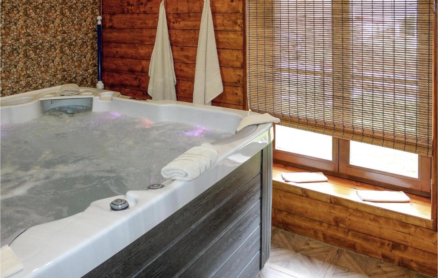 Three-Bedroom Holiday Home. This luxurious holiday home provides a hot tub, a sauna and a fireplace. Boasting a private entrance, this air-conditioned holiday home comes with 1 living room, 3 separate bedrooms and 2 bathrooms with a shower and a hairdryer. Guests will find a stovetop, a refrigerator, a dishwasher and kitchenware in the kitchen. The holiday home also includes a barbecue. The spacious holiday home features a washing machine, a dining area and a balcony. The unit has 4 beds.