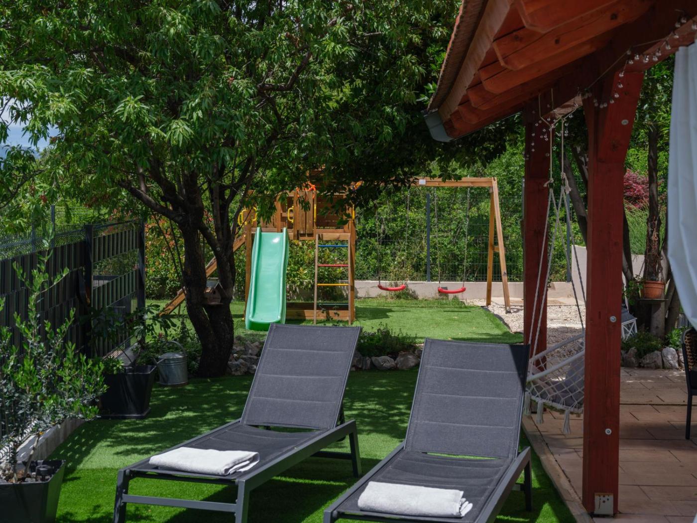 For guests with children, the holiday home provides outdoor play equipment and a baby safety gate. The holiday home has a picnic areayou can spend a day out in the open.