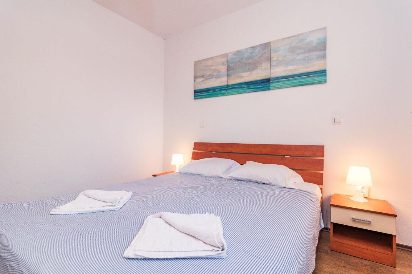 Two-Bedroom Apartment. The air-conditioned apartment has 2 bedrooms, 1 bathroom and a kitchen. Guests can make meals in the kitchen that features a stovetop, a refrigerator, a dishwasher and kitchenware. The spacious apartment features an electric kettle, heating and sea views. The unit has 3 beds.