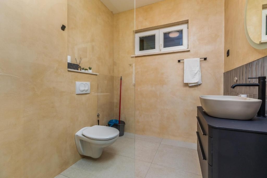 Apartment can accommodate 4 guests. Beds are situated in 1 sleeping rooms, but also in the living room, within 56m2. Guests can use a private terrace to enjoy the warm summer evenings. The apartment offers the sea view. Food can be prepared using barbecue which is shared with other guests too. Shared pool is on disposal during stay. INCLUDED IN THE PRICE: tourist tax, final cleaning, air-conditioning, pool, parking, internet, baby cot, iron, ironing board, hairdryer, sunshade, sunchairs. OPTIONAL ADDITIONAL COSTS: laundry (€7.00 washing). The availability of additional services for your chosen dates of stay, as well as their prices (if none are listed) must be checked ahead of time. Any additional services not shown in the price calculation are payable directly to the property owner and only if used by the visitor. Discounts to the base price: free day 14=13 (for reservations of 14 or more days you get one free day for the stay until 31122026).