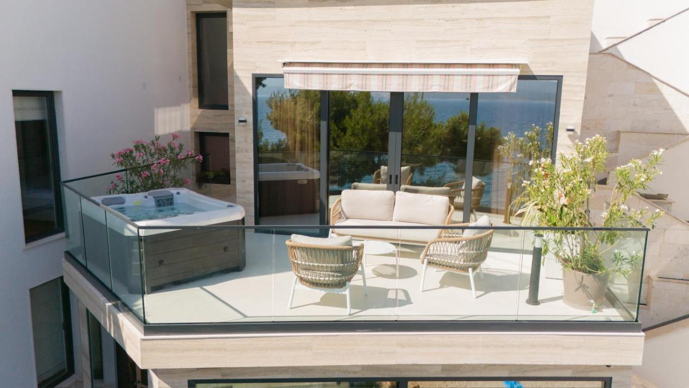 Suite Apartment. This luxurious apartment features a pool with a view, a hot tub and a spa bath. The air-conditioned apartment has 2 bedrooms and 1 bathroom with a shower and a hairdryer. Guests will find a stovetop, a refrigerator, a dishwasher and kitchenware in the well-equipped kitchen. The apartment also comes with a barbecue. Boasting a terrace with sea views, this apartment also features a washing machine and a flat-screen TV. The unit has 3 beds. ;