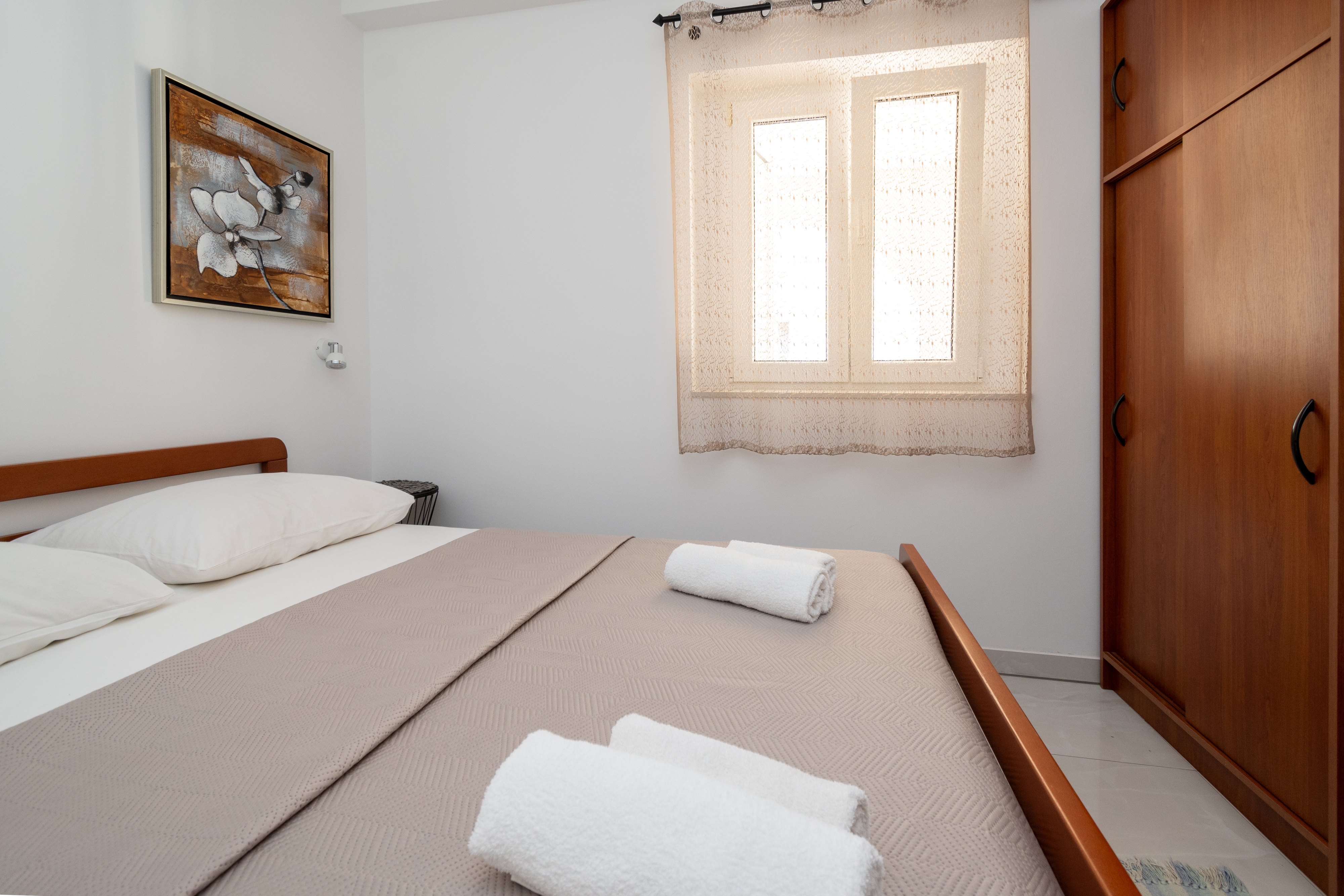 Apartment can accommodate 2 guests. Beds are situated in 1 sleeping rooms, within 22m2. Guests can use a private terrace to enjoy the warm summer evenings. Food can be prepared using barbecue which is shared with other guests too. For the booked accommodation unit the deposit is paid directly to the owner upon check-in (deposit amount is displayed on the website) INCLUDED IN THE PRICE: tourist tax, final cleaning, parking, internet. OBLIGATORY ADDITIONAL COSTS: deposit (€100.00 one-time payment), short stay fee (surcharge depending on a number of booked nights: 30% - 1, 20% - 2, 10% - 3). OPTIONAL ADDITIONAL COSTS: air-conditioning (€10.00 per night). The availability of additional services for your chosen dates of stay, as well as their prices (if none are listed) must be checked ahead of time. Any additional services not shown in the price calculation are payable directly to the property owner and only if used by the visitor. Discounts to the base price: free day 14=13 (for reservations of 14 or more days you get one free day for the stay until 31122026).