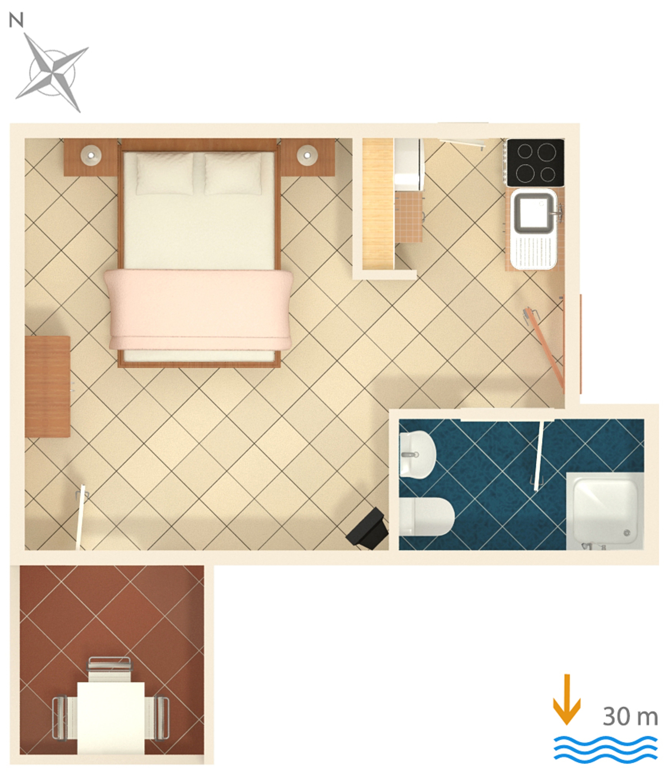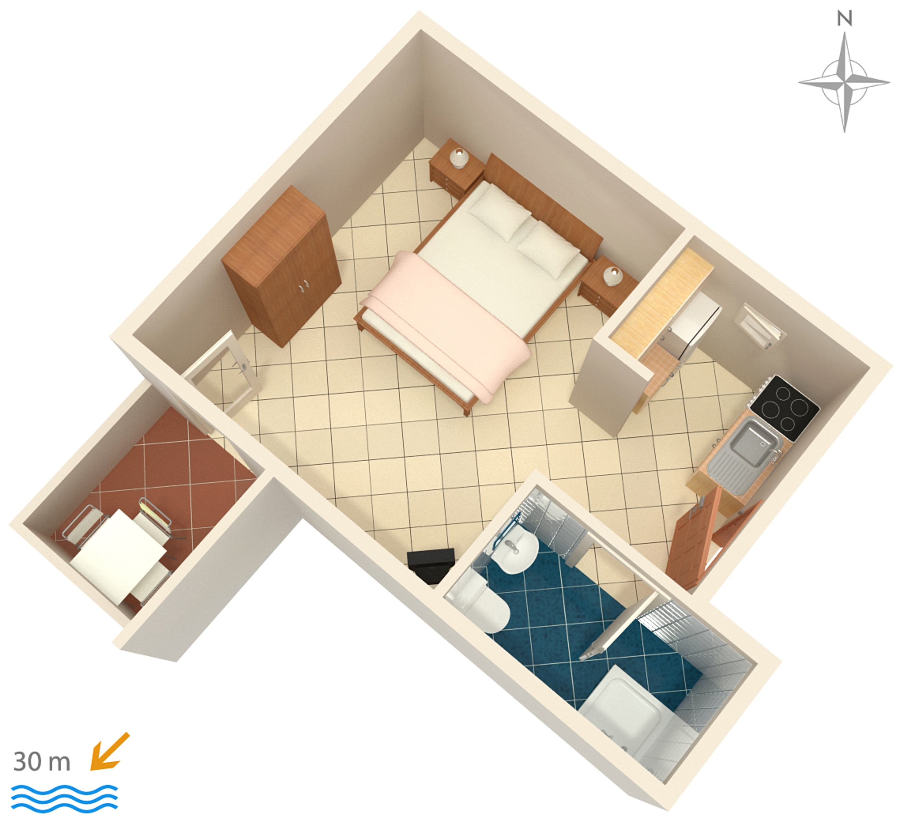Studio flat can accommodate 2 guests. Beds are situated in 1 sleeping rooms, within 19m2. Guests can use a private terrace to enjoy the warm summer evenings. The studio offers the sea view. Food can be prepared using barbecue which is shared with other guests too. INCLUDED IN THE PRICE: tourist tax, final cleaning, parking, internet. OPTIONAL ADDITIONAL COSTS: air-conditioning (€10.00 per night), boat mooring (€5.00 per night). The availability of additional services for your chosen dates of stay, as well as their prices (if none are listed) must be checked ahead of time. Any additional services not shown in the price calculation are payable directly to the property owner and only if used by the visitor. Discounts to the base price: free day 14=13 (for reservations of 14 or more days you get one free day for the stay until 31122026).