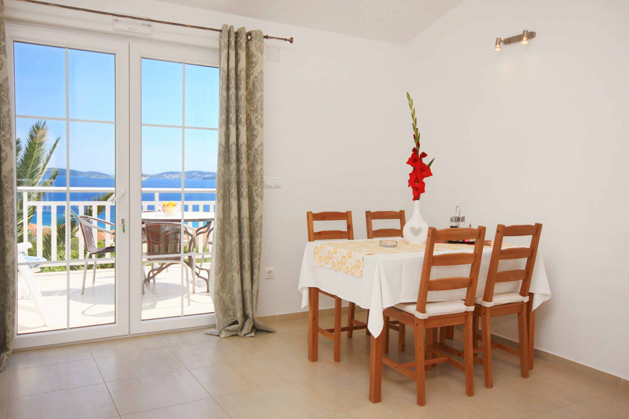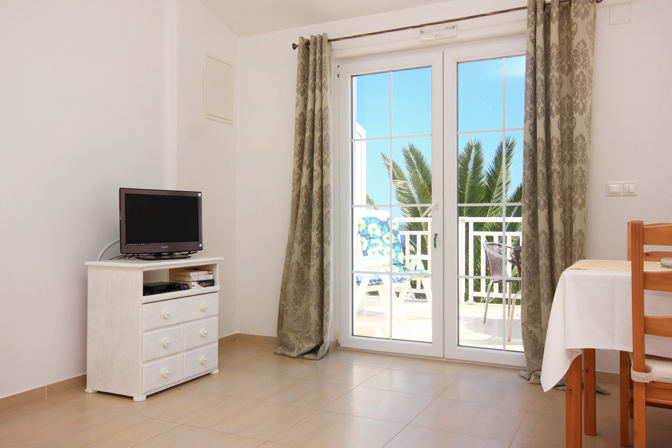 Apartment can accommodate 4 guests. Beds are situated in 1 sleeping rooms, but also in the living room, within 38m2. Guests can use a private terrace to enjoy the warm summer evenings. The apartment offers the sea view. INCLUDED IN THE PRICE: tourist tax, final cleaning, air-conditioning, parking, internet, baby cot, iron, ironing board, hairdryer. OBLIGATORY ADDITIONAL COSTS: short stay fee (surcharge depending on a number of booked nights: 30% - 1, 20% - 2, 10% - 3). The availability of additional services for your chosen dates of stay, as well as their prices (if none are listed) must be checked ahead of time. Any additional services not shown in the price calculation are payable directly to the property owner and only if used by the visitor. Discounts to the base price: free day 14=13 (for reservations of 14 or more days you get one free day for the stay until 31122026).