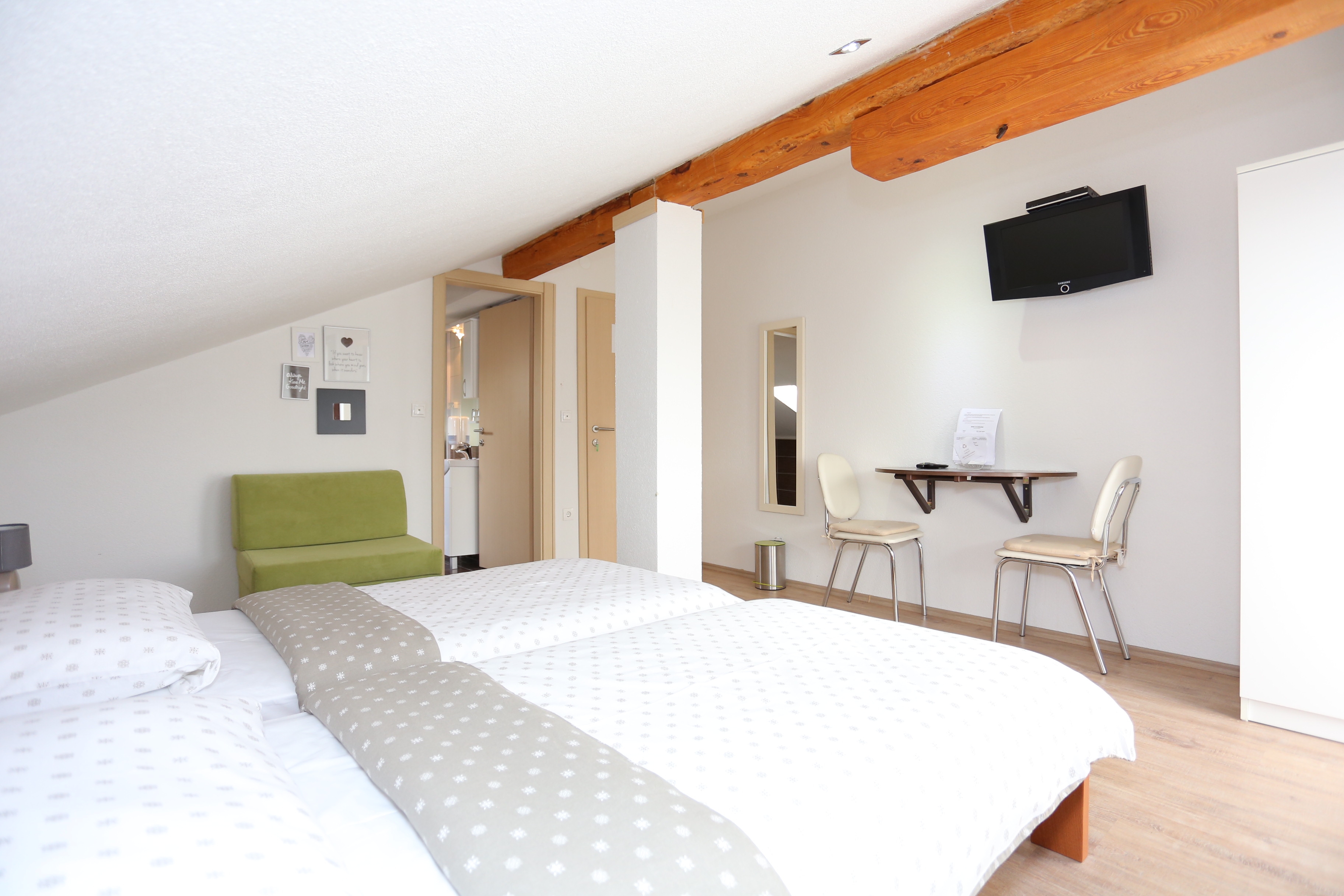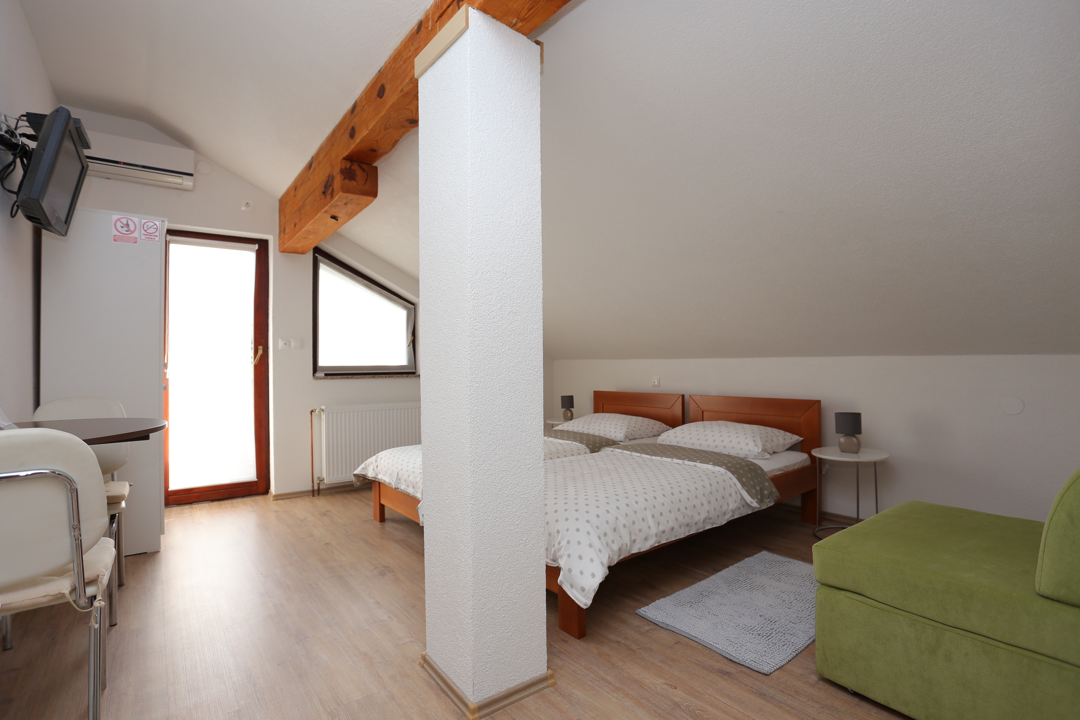 Room can accommodate 3 guests. Beds are situated in 1 sleeping rooms, within 25m2. Reserved accommodation unit is a room with its own bathroom and there is no usage of kitchen. Reserved accommodation unit has a shared balcony. Reserved accommodation unit has a shared terrace. INCLUDED IN THE PRICE: tourist tax, final cleaning, air-conditioning, central heating, parking, internet, baby cot, iron, ironing board, hairdryer. OPTIONAL ADDITIONAL COSTS: breakfast (€5.00, a 50% discount for children aged 4 to 12 years, Children up to age 4 free of charge), laundry (€5.00 washing). The availability of additional services for your chosen dates of stay, as well as their prices (if none are listed) must be checked ahead of time. Any additional services not shown in the price calculation are payable directly to the property owner and only if used by the visitor.