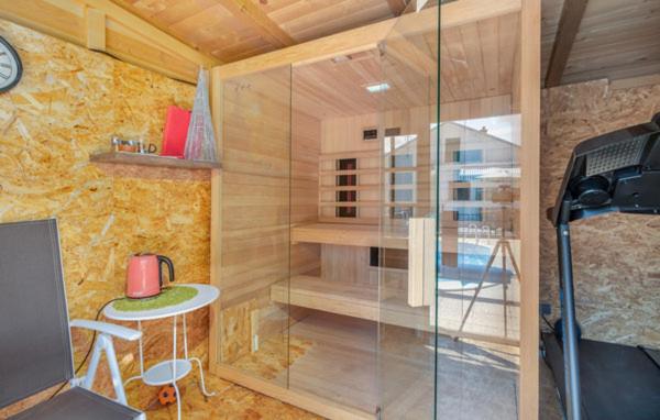 Two-Bedroom House. This luxurious holiday home has a pool with a view, a sauna and a fireplace. Guests will find a stovetop, a refrigerator, a dishwasher and an oven in the kitchen. The holiday home also includes a barbecue. The air-conditioned holiday home features a flat-screen TV, a washing machine, a private entrance, a tea and coffee maker as well as garden views. The unit has 4 beds.