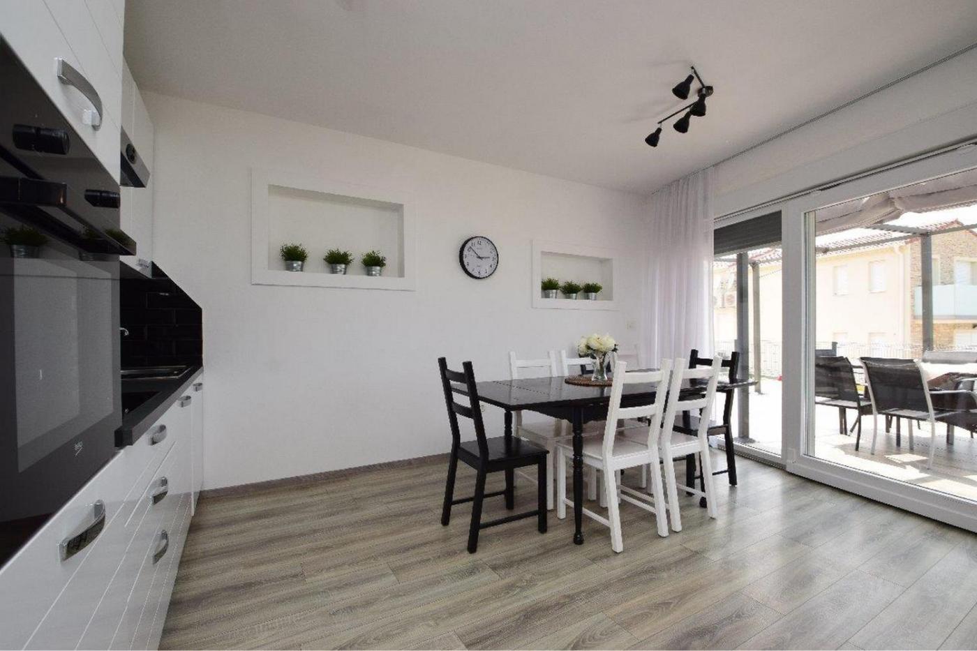 The apartment has a terrace and a barbecue.
