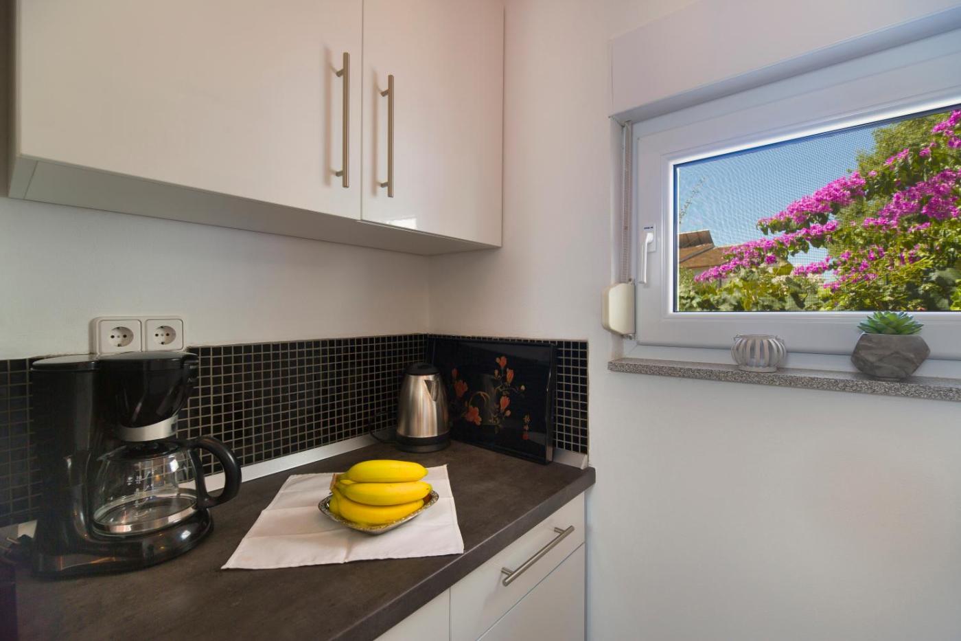 One-Bedroom Apartment. Boasting a private entrance, this air-conditioned apartment comes with 1 living room, 1 separate bedroom and 1 bathroom with a shower and a hairdryer. In the fully equipped kitchen, guests will find a stovetop, a refrigerator, kitchenware and a tea and coffee maker. Featuring a terrace with garden views, this apartment also features soundproof walls and a flat-screen TV with satellite channels. The unit has 2 beds.