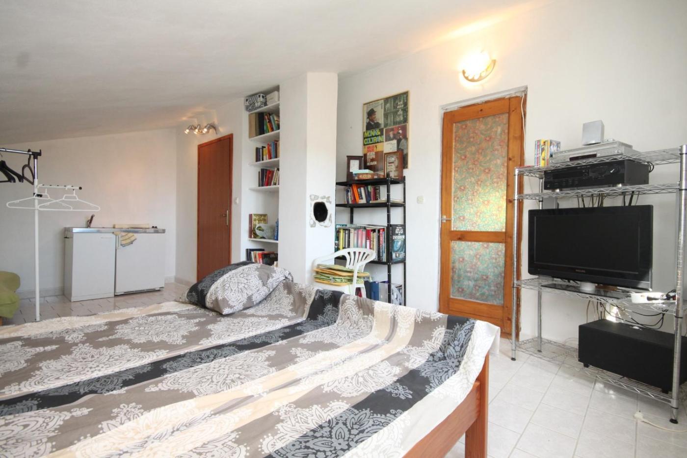 One-Bedroom Apartment with Terrace. Boasting a private entrance, this air-conditioned apartment features 1 living room, 1 separate bedroom and 1 bathroom with a bath. Guests can make meals in the kitchenette that has a stovetop, a refrigerator and kitchenware. Featuring a terrace, this apartment also features a washing machine, a seating area and a TV with satellite channels. The unit has 4 beds.
