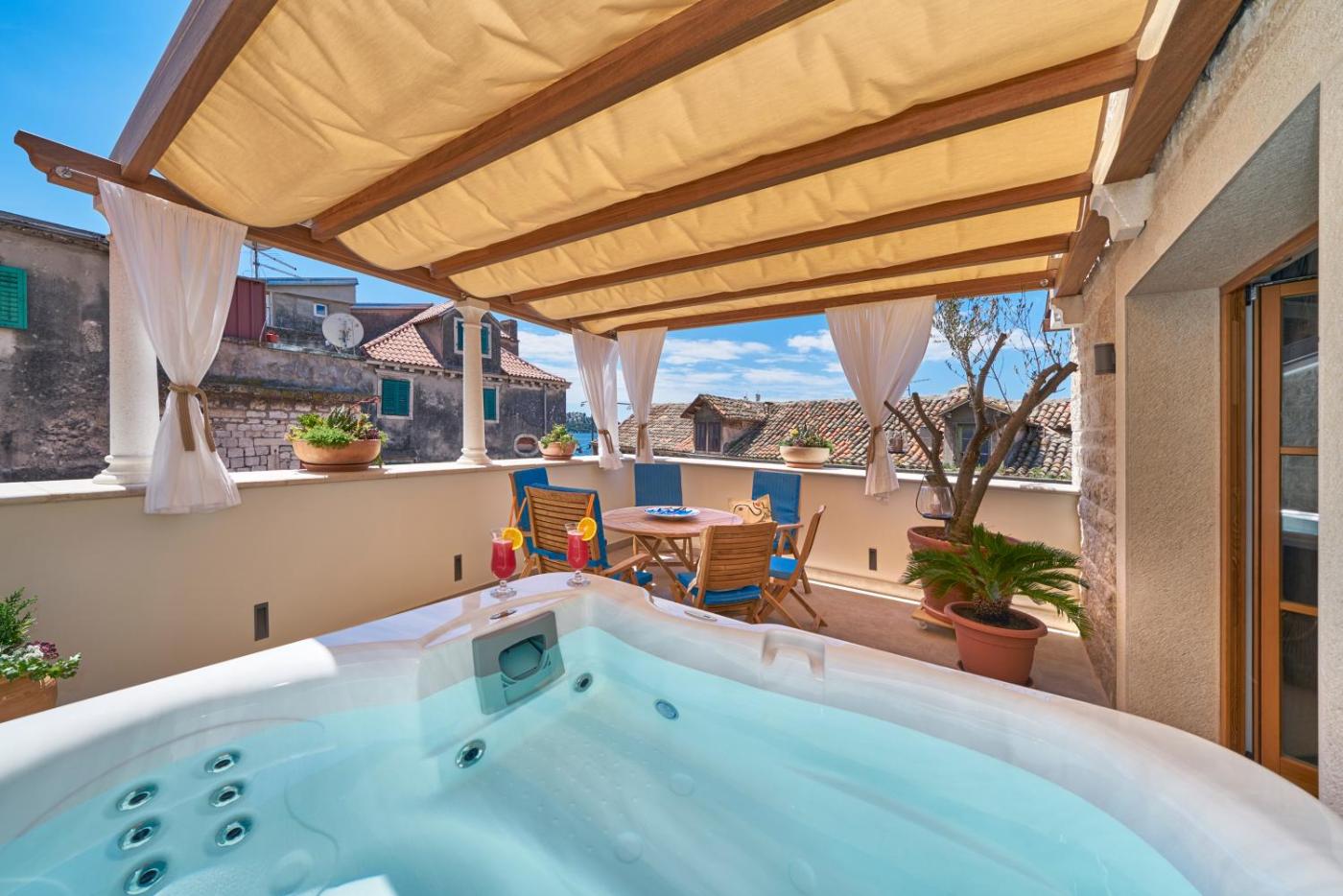 Deluxe Apartment with Terrace. Guests will have a special experience as the apartment features a hot tub. Featuring a private entrance, this air-conditioned apartment consists of 1 living room, 1 separate bedroom and 1 bathroom with a walk-in shower and a bath. Guests can make meals in the kitchen that is equipped with a stovetop, a refrigerator, a dishwasher and kitchenware. Boasting a terrace with sea views, this apartment also provides soundproof walls and a flat-screen TV with cable channels. The unit offers 2 beds. ;