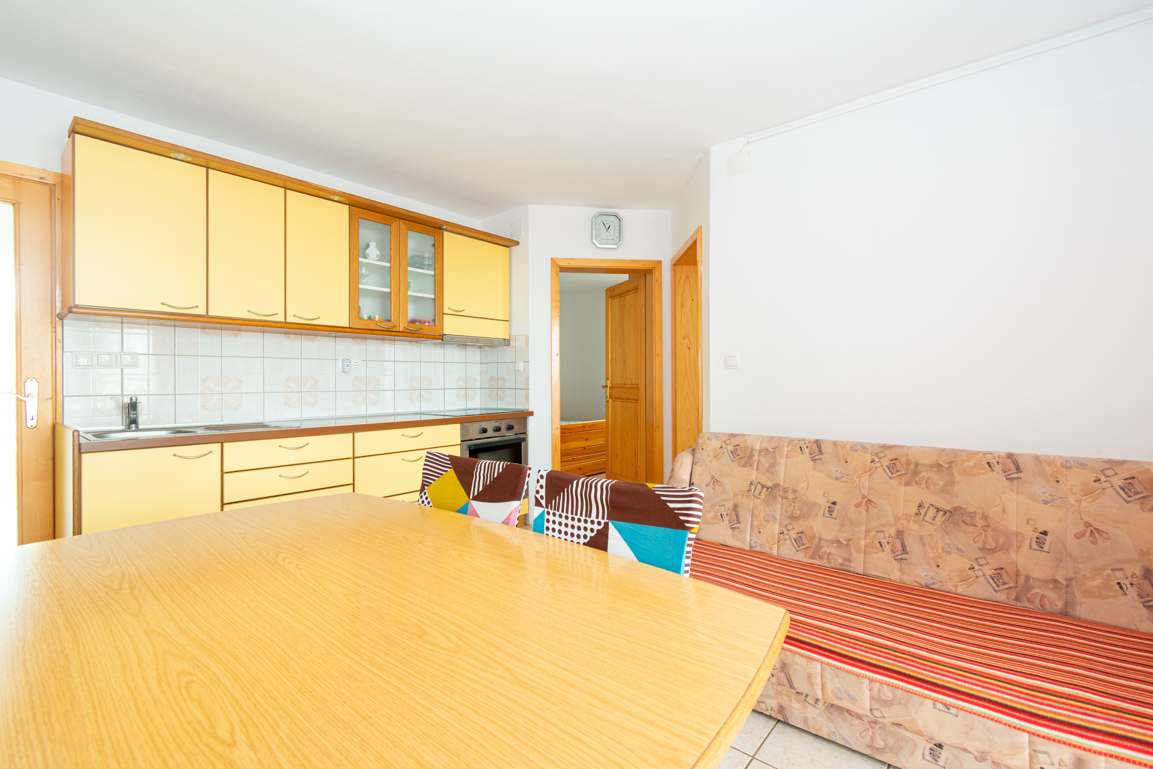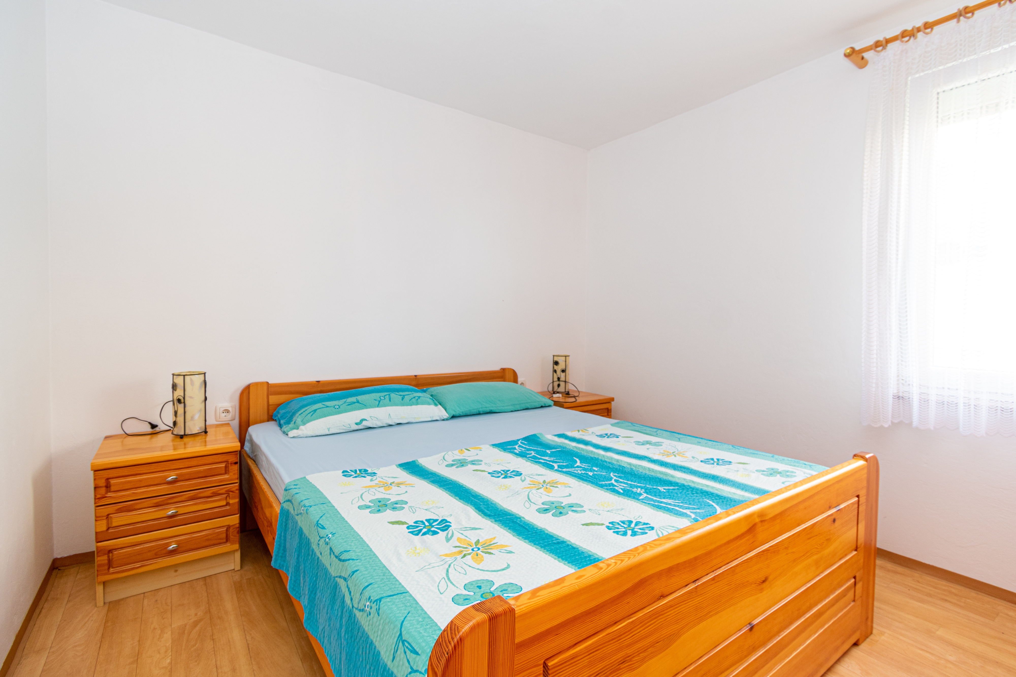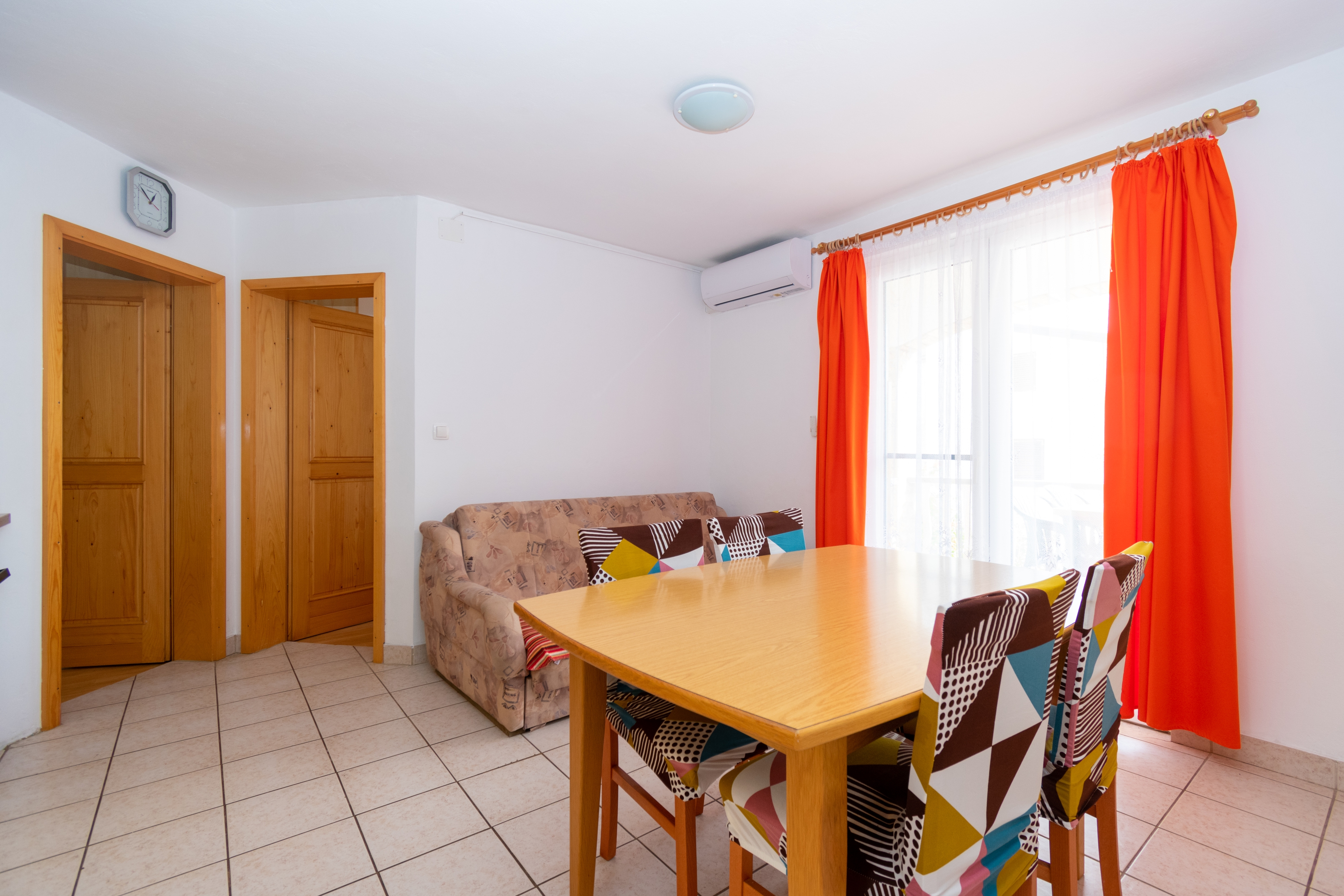 Apartment can accommodate 5 guests. Beds are situated in 2 sleeping rooms, but also in the dining room, within 54m2. Guests can use a private balcony to enjoy the warm summer evenings. The apartment offers the sea view. Food can be prepared using barbecue which is shared with other guests too. INCLUDED IN THE PRICE: tourist tax, final cleaning, air-conditioning, parking, internet, baby cot, iron, hairdryer. OBLIGATORY ADDITIONAL COSTS: short stay fee (surcharge depending on a number of booked nights: 30% - 1, 20% - 2, 10% - 3). The availability of additional services for your chosen dates of stay, as well as their prices (if none are listed) must be checked ahead of time. Any additional services not shown in the price calculation are payable directly to the property owner and only if used by the visitor.