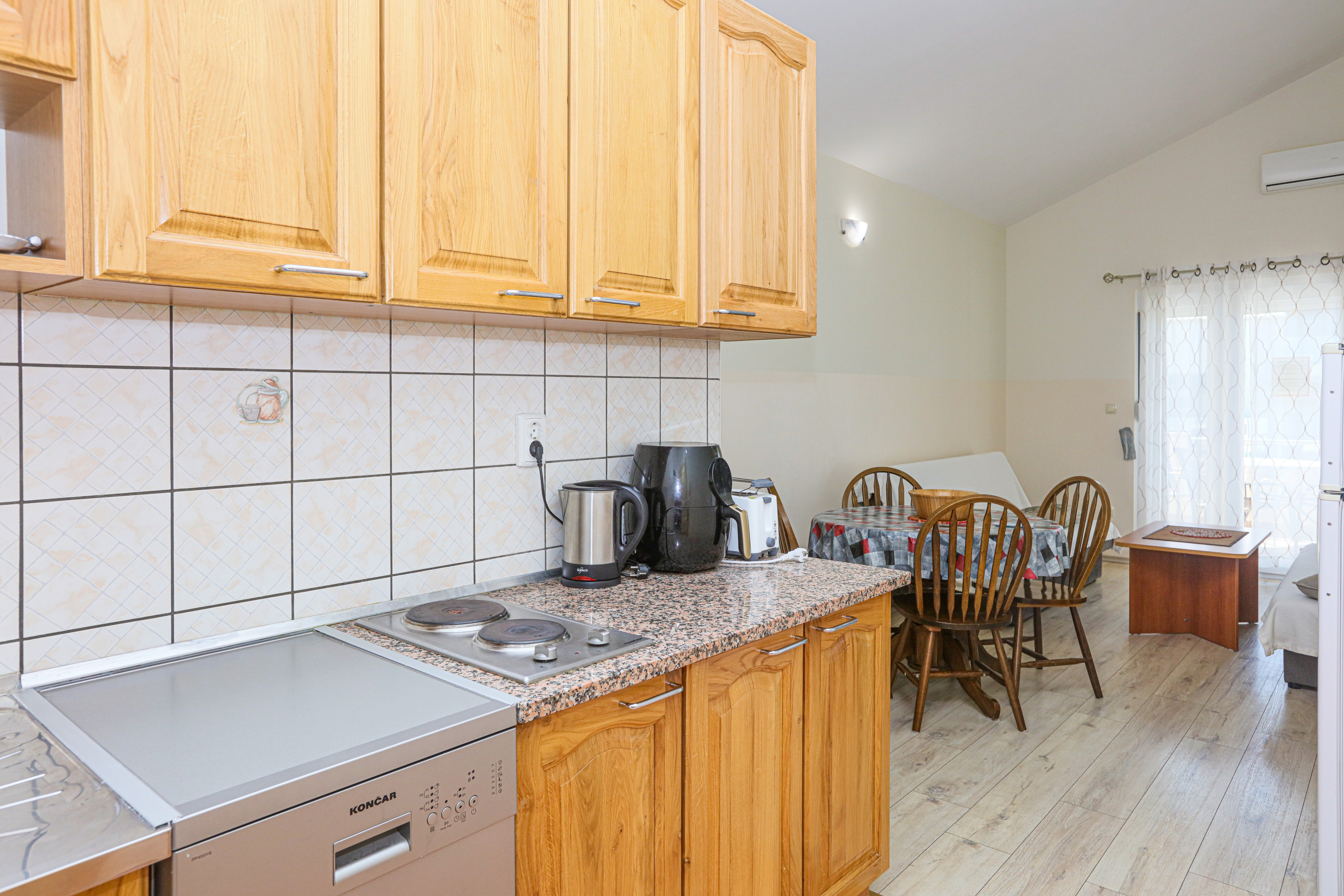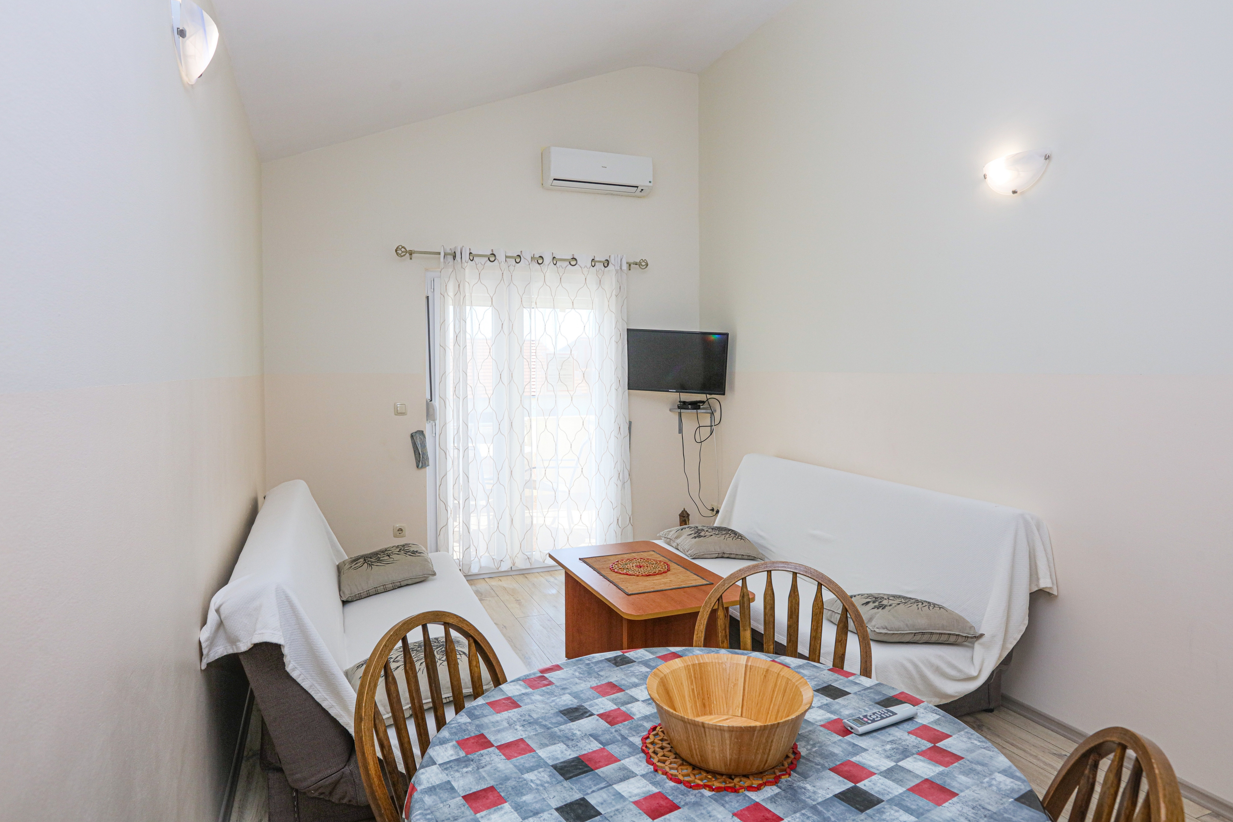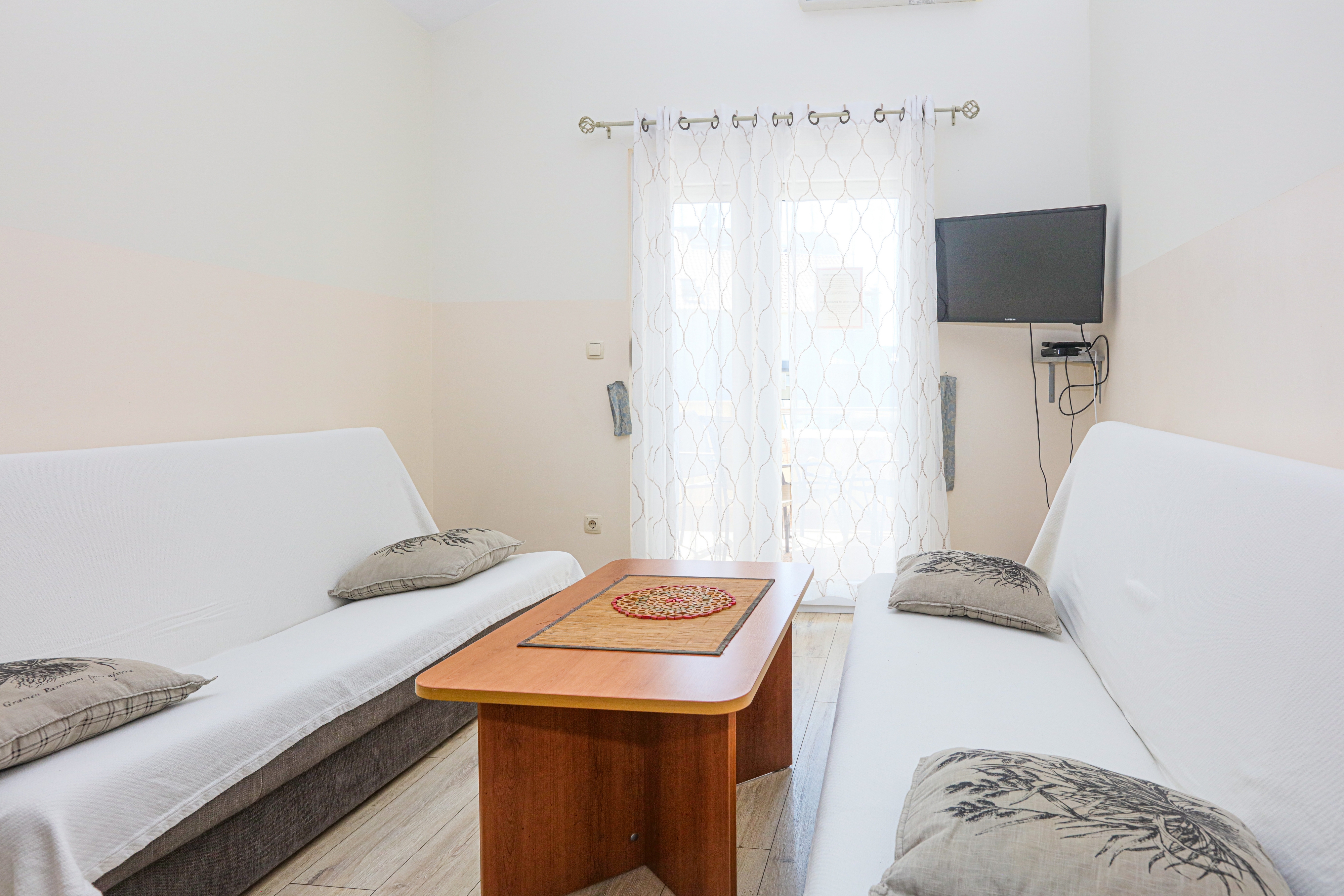 Apartment can accommodate 4 guests. Beds are situated in 1 sleeping rooms, but also in the living room, within 36m2. Guests can use a private balcony to enjoy the warm summer evenings. Food can be prepared using barbecue which is shared with other guests too. This accommodation unit welcomes pets at no additional costs. INCLUDED IN THE PRICE: tourist tax, final cleaning, air-conditioning, parking, internet, laundry, pets, baby cot, additional bed, hairdryer. The availability of additional services for your chosen dates of stay, as well as their prices (if none are listed) must be checked ahead of time. Any additional services not shown in the price calculation are payable directly to the property owner and only if used by the visitor. Discounts to the base price: free day 14=13 (for reservations of 14 or more days you get one free day for the stay until 31122026).