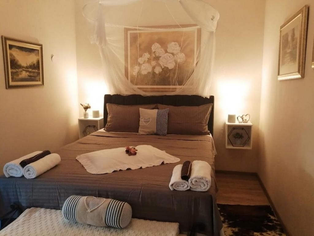 Apartment can accommodate 6 guests. Beds are situated in 2 sleeping rooms, but also in the living room, within 83m2. Guests can use a private terrace to enjoy the warm summer evenings. Food can be prepared using barbecue which is shared with other guests too. Shared pool is on disposal during stay. This accommodation unit welcomes pets at an additional charge. INCLUDED IN THE PRICE: tourist tax, final cleaning, air-conditioning, pool, parking, internet, laundry, iron, hairdryer. OBLIGATORY ADDITIONAL COSTS: short stay fee (surcharge depending on a number of booked nights: 30% - 1, 20% - 2, 10% - 3). OPTIONAL ADDITIONAL COSTS: pets (€15.00 per night). The availability of additional services for your chosen dates of stay, as well as their prices (if none are listed) must be checked ahead of time. Any additional services not shown in the price calculation are payable directly to the property owner and only if used by the visitor. Discounts to the base price: free day 14=13 (for reservations of 14 or more days you get one free day for the stay until 31122026).