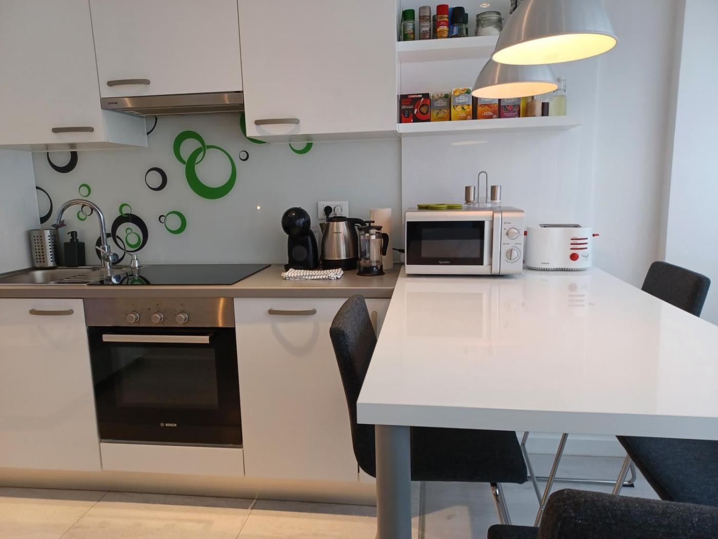 One-Bedroom Apartment. Featuring a private entrance, this air-conditioned apartment comprises 1 living room, 1 separate bedroom and 1 bathroom with a shower and a hairdryer. Guests can make meals in the kitchen that comes with a stovetop, a refrigerator, a dishwasher and kitchenware. The apartment provides a washing machine, a tea and coffee maker, a seating area, a dining area, as well as a flat-screen TV. The unit offers 2 beds.