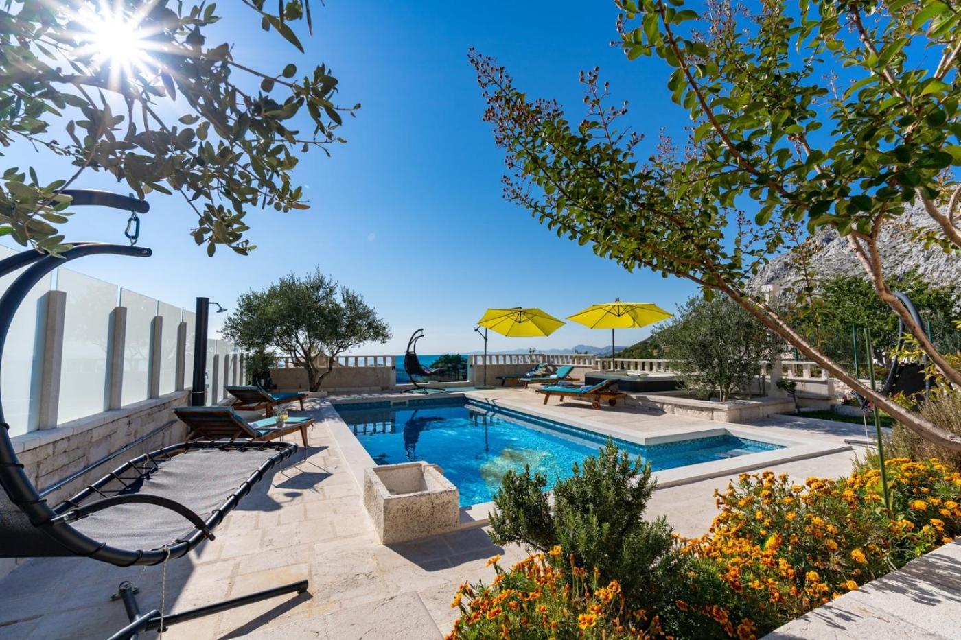 Villa. Guests will have a special experience as this villa provides a private pool, a hot tub and a fireplace. Featuring a private entrance, this air-conditioned villa is comprised of 1 living room, 3 separate bedrooms and 2 bathrooms with a shower and a hairdryer. Guests will find a stovetop, a refrigerator, a dishwasher and kitchenware in the well-equipped kitchen. The villa also has a barbecue. Boasting a terrace with sea views, this villa also offers a washing machine and a TV with satellite channels. The unit offers 4 beds.